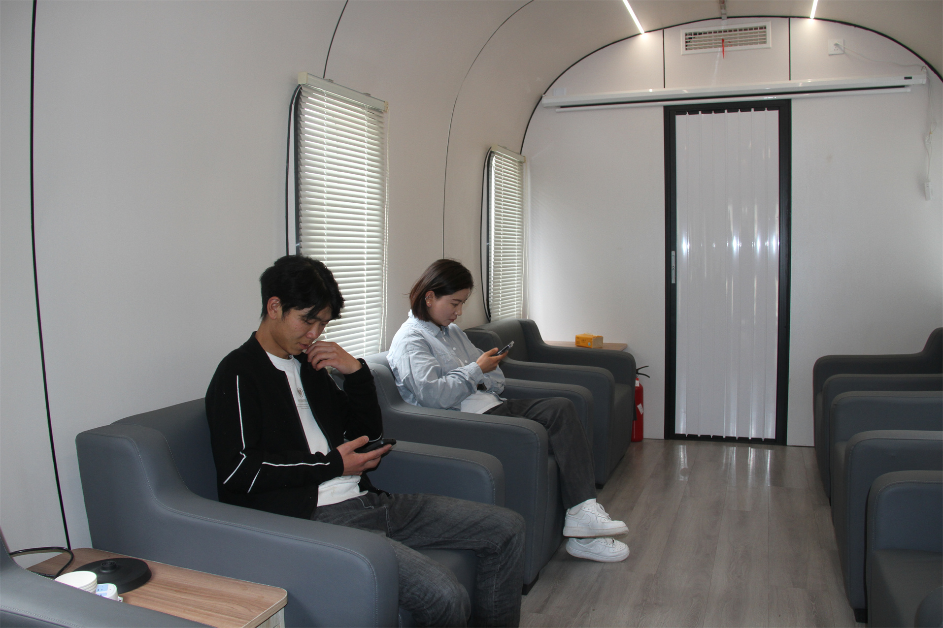 圖為游客在高原生命氧艙玩手機,高反癥狀明顯減輕。