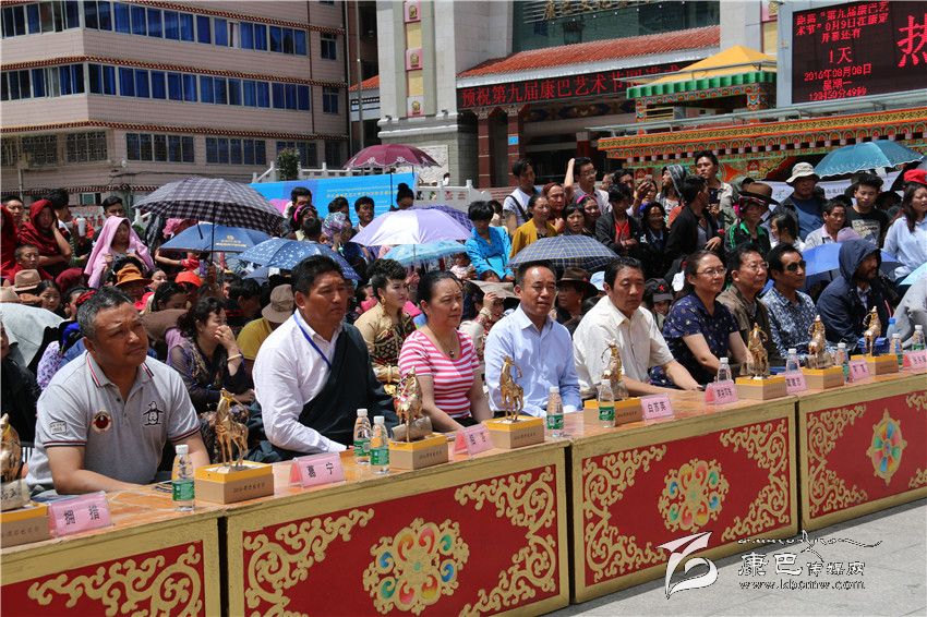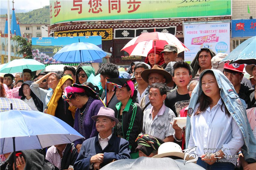 儀式上,當(dāng)擁金措、貢桑吉和布姆分別演唱了《世紀(jì)情白玉夢》、《欽諾》和《康巴之戀》時,場下掌聲不斷。接著,當(dāng)州民族歌舞團的小伙們跳起歡快的《踢踏》時,在場的觀眾立刻與之互動,并不時爆發(fā)出熱烈掌聲。