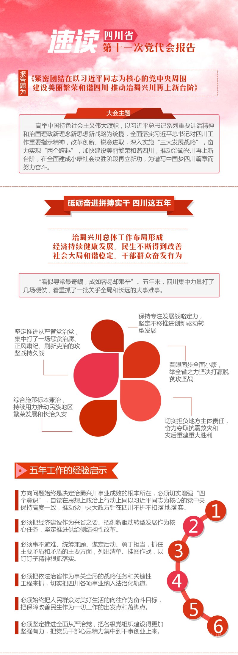 省第十一次黨代會(huì)5月24日上午開幕,王東明代表十屆四川省委向大會(huì)作報(bào)告。四川這五年砥礪奮進(jìn)拼搏實(shí)干取得了怎樣的成績(jī)?收獲哪些經(jīng)驗(yàn)啟示?未來(lái)如何開創(chuàng)發(fā)展新局面?