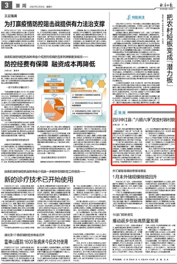 2月8日,經(jīng)濟日報對四川德陽中江縣在疫情防控中,搞好環(huán)境衛(wèi)生的好做法進行了報道,全文如下: