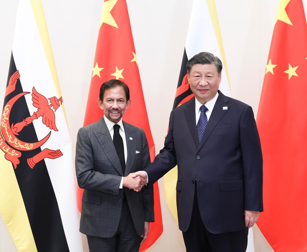 當?shù)貢r間11月16日下午,國家主席習近平在舊金山會見文萊蘇丹哈桑納爾。