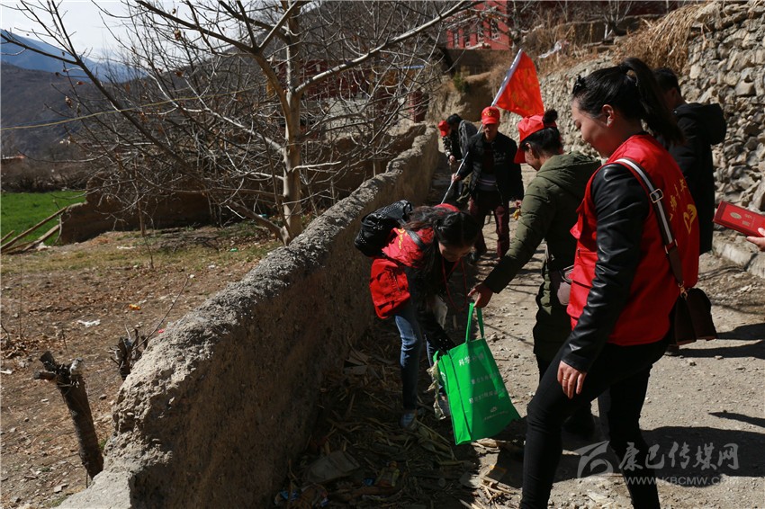 志愿者幫助農(nóng)戶清理垃圾。