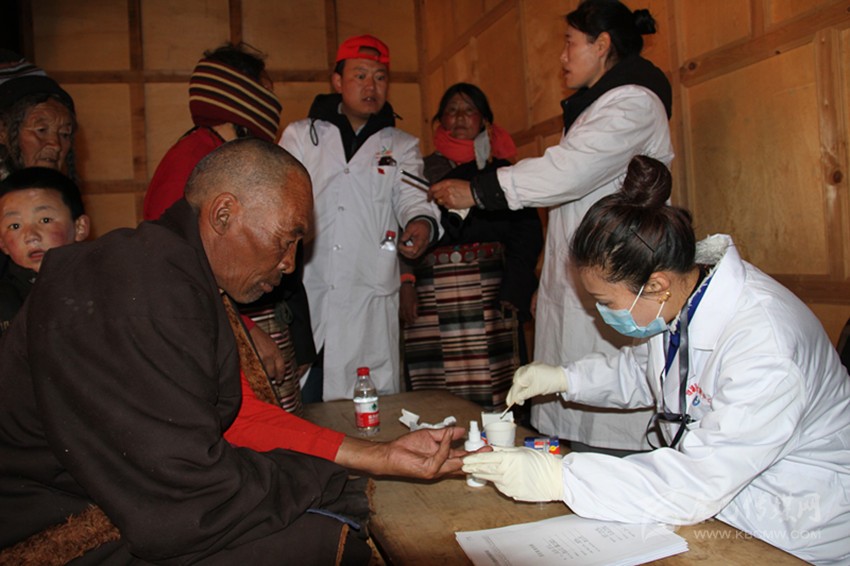 本網(wǎng)訊(葉強(qiáng)平)4月11日,理塘縣衛(wèi)計(jì)局組織19名醫(yī)務(wù)人員,深入離縣城60多公里、海拔4200多米的村戈鄉(xiāng)拖仁村,為90多名牧民群眾進(jìn)行了體重、血壓、B超、心電圖、婦女病篩查等健康檢查,還為群眾建立了健康檔案。圖為醫(yī)務(wù)人員在為牧民群眾測(cè)血糖。