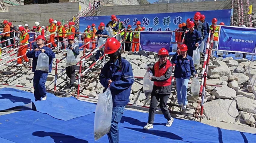 “今年放流的魚苗種類繁多,有四川裂腹魚、短須裂腹魚、長(zhǎng)絲裂腹魚、裸腹葉須魚、軟刺裸裂尻等,其中,裸腹葉須魚為中國(guó)瀕危動(dòng)物紅皮書‘易?!~類,四川裂腹魚為四川省重點(diǎn)保護(hù)魚類。”華電金上葉巴灘分公司負(fù)責(zé)人說(shuō),為減少工程建設(shè)對(duì)魚類及水生生物的影響,公司建立了萬(wàn)里長(zhǎng)江第一級(jí)魚類增殖放流站,是國(guó)內(nèi)首個(gè)截流當(dāng)年開展增殖放流的水電站,自2019年首次舉辦試驗(yàn)性增殖放流活動(dòng)以來(lái),累計(jì)放流106萬(wàn)尾特有珍稀魚苗。同時(shí)為進(jìn)一步推進(jìn)金沙江魚類種群恢復(fù)、水域生態(tài)環(huán)境的改善,公司還追加了1.7億元的環(huán)保投資,增設(shè)了一臺(tái)生態(tài)備用機(jī)組,提高運(yùn)行期生態(tài)下泄流量的安全度和保證率。聯(lián)合華中農(nóng)業(yè)大學(xué)開展黃石爬鮡、姚氏高原鰍等遠(yuǎn)期放流魚種人工繁殖技術(shù)研究,采取分層取水技術(shù),有效改善水庫(kù)下泄水溫,為魚類繁殖生存提供適宜條件。