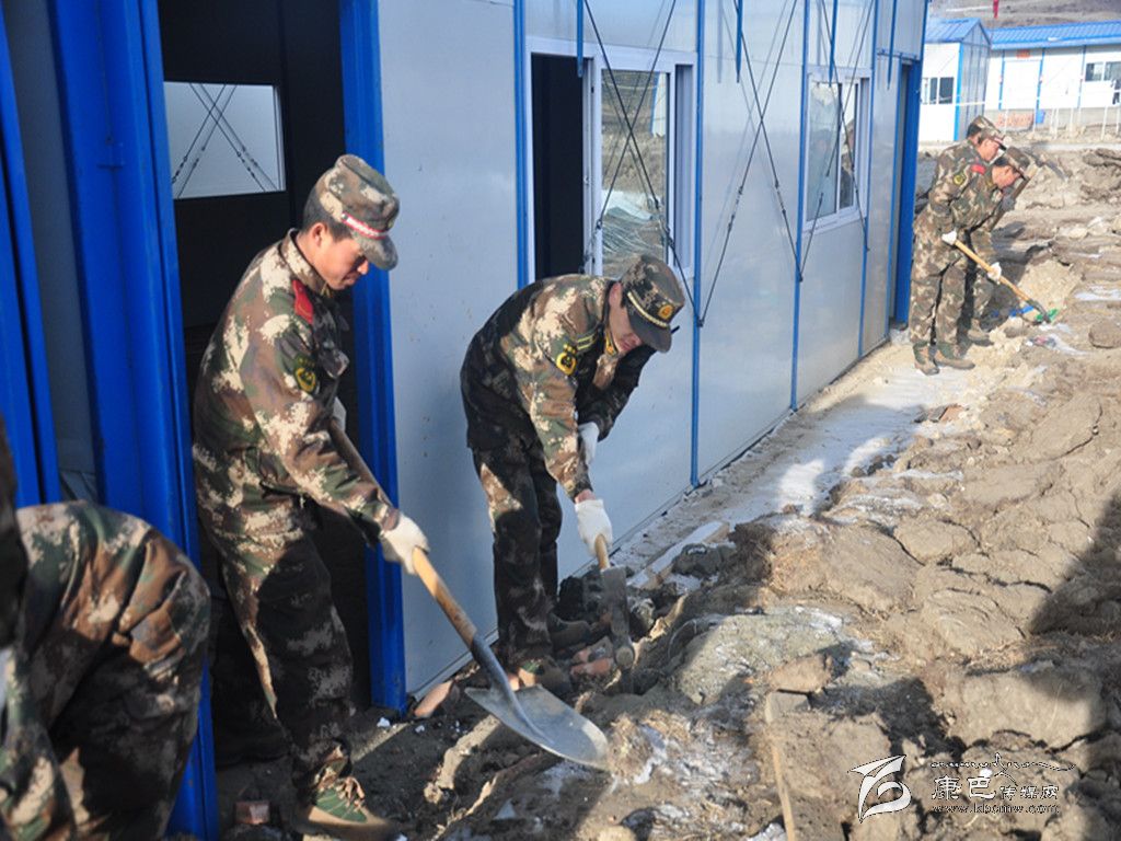 堅守在康定“11.22”地震重災(zāi)區(qū)塔公鎮(zhèn)的武警四川總隊二支隊抗震救災(zāi)官兵,克服高寒缺氧,全力投入板房學(xué)校搭建,官兵們在艱苦的環(huán)境中度過了2015年的第一天。