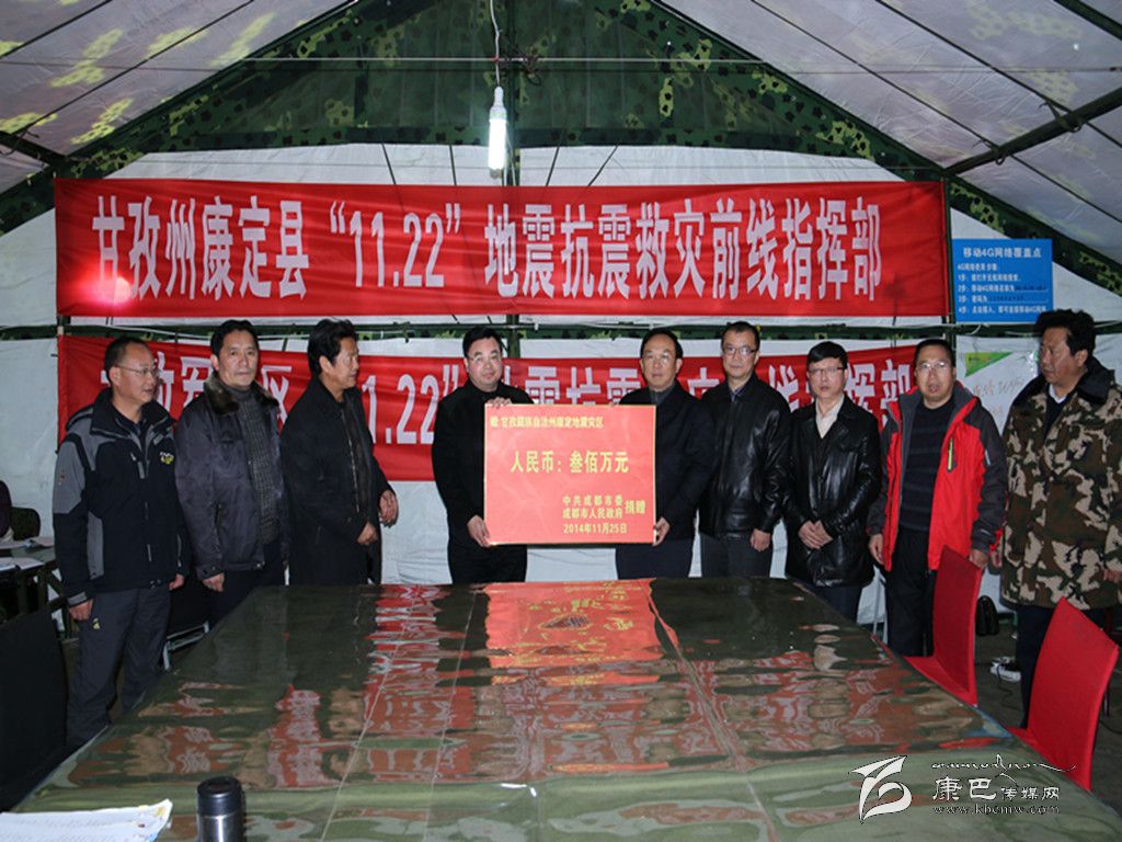 州委書(shū)記胡昌升接受成都市向康定縣“11·22”地震災(zāi)區(qū)捐款。