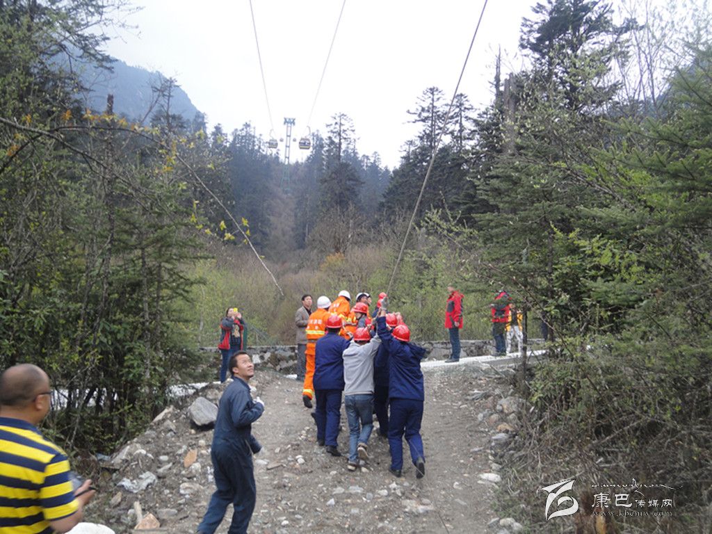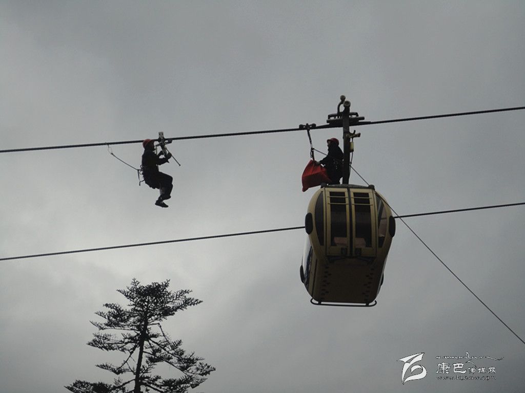 應急演練活動是模擬索道發(fā)生脫索故障,開展人工救護應急訓練。在演練活動中,海螺溝客運索道出現故障不能運轉,在1C支架和2#支架之間,兩個車廂共有三名游客滯留空中。海螺溝旅游索道公司立即啟動應急預案,救護總指揮下達救援指令。后勤組成員對著車廂喊話,穩(wěn)定游客情緒。救護小組全體人員,安全、有序、迅速到達各自崗位,地面工作人員與空中救援人員相互配合,同時密切注意被困乘客的安全情況,正確操作各項程序,僅用半個小時就將被困乘客送到地面,安全完成營救。地面輔助救護人員立即對被營救人員進行現場檢查和救治,保障了被營救人員的生命安全,應急演練活動圓滿完成。
