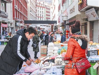 2月3日,記者在丹巴縣嘉絨步行街看到,商店門口年貨琳瑯滿目,透出濃濃的節(jié)日喜慶氣氛。到嘉絨步行街購置年貨,已成為許多“老丹巴”多年的習慣。