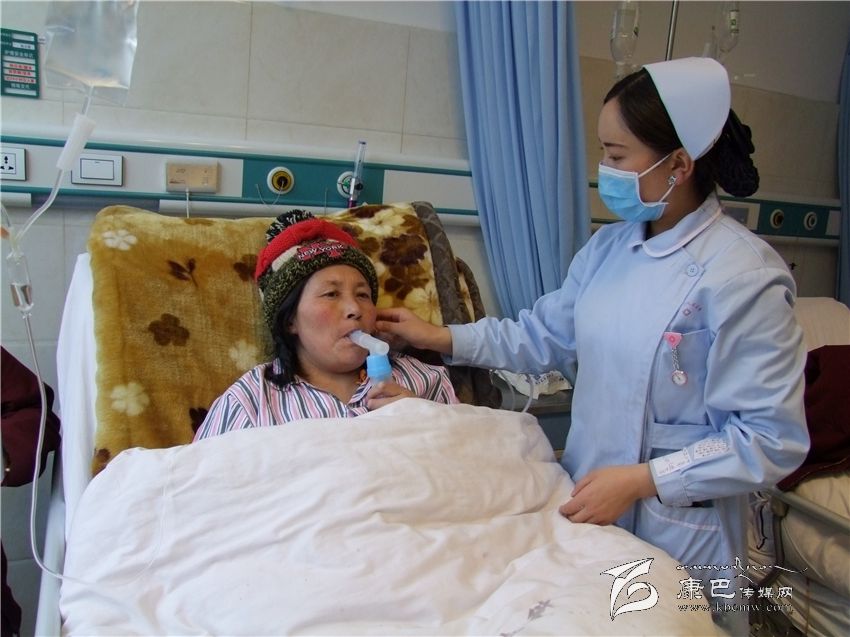 護士正在護理即將出院的石渠縣瓦須鄉(xiāng)村民娜姆。