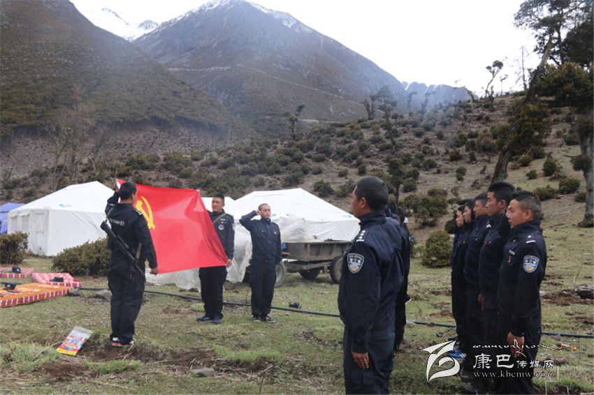 “我志愿加入中國(guó)共產(chǎn)黨,擁護(hù)黨的綱領(lǐng),遵守黨的章程,履行黨員義務(wù),執(zhí)行黨的決定,嚴(yán)守黨的紀(jì)律,保守黨的秘密,對(duì)黨忠誠(chéng),積極工作,為共產(chǎn)主義奮斗終身。”在建黨95周年之際,九龍縣海拔4800米的熱枯蟲(chóng)草采集點(diǎn)熱鬧非凡,村民正忙著采挖蟲(chóng)草,20名駐地執(zhí)勤民警在局長(zhǎng)的帶領(lǐng)下,舉行了一場(chǎng)別開(kāi)生面的重溫入黨誓詞活動(dòng),那一聲聲錚錚誓言響徹在雪山上空。