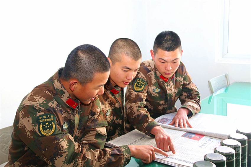 為充分發(fā)揮紅色文化凝神聚氣、鑄魂育人作用,激發(fā)廣大官兵弘揚紅軍傳統(tǒng)、履行職責使命、砥礪戰(zhàn)斗精神的思想自覺、政治自覺和行為自覺,近日,川西高原武警二支隊傾心打造了形式多樣、內(nèi)容豐富的“紅色文化套餐”,使官兵在潛移默化中感悟紅色文化的獨特魅力,在學習傳承中砥礪意志、激發(fā)斗志、提高素質,不斷厚實了部隊“紅色土壤”,不斷提升了部隊“軟實力”。圖為官兵在閱讀紅色書籍及黨報。 (張小剛 攝影報道)