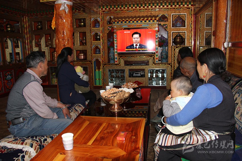 理塘藏族群眾在家中收看省黨代會(huì)開(kāi)幕大會(huì)直播。