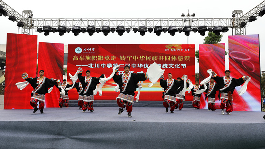 甘孜州籍學(xué)生在北川中學(xué)中華優(yōu)秀傳統(tǒng)文化節(jié)上表演節(jié)目。