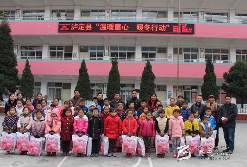 瀘定為特困兒童發(fā)放羽絨服。