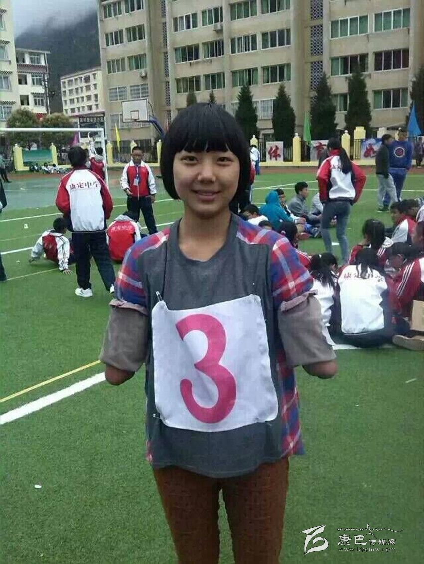 在康定中學(xué)校園里,你會(huì)邂逅這樣一位女孩:臉上永遠(yuǎn)燦爛著陽(yáng)光般的微笑,雙眼永遠(yuǎn)閃爍著自信樂觀的光芒。教室里,她聚精會(huì)神地聽課;圖書館里,她專心致志地讀書;操場(chǎng)上,她身輕如燕地奔跑;寢室里,她開心爽朗地和同學(xué)交流。可你仔細(xì)一看,她竟然沒有雙臂,就像折翼的天使。她就是該校高2016屆8班學(xué)生,羌族女孩許方燕。行走在高原的風(fēng)中,她是一幀讓每一個(gè)人內(nèi)心泛起感動(dòng)漣漪的美麗風(fēng)景……