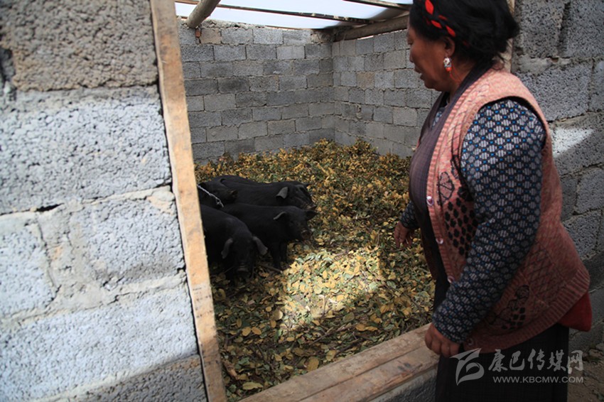 “文化嘛,我不高,啥子說不來?!便y鳳用手指了指紅本本。蒲江濤解釋到,按了手印,就表明這些扶貧項目已經(jīng)落實了。在銀鳳家房背后,紅本本上寫的扶貧項目一一變成了現(xiàn)實。去年修的豬圈、雞圈、蔬菜大棚緊緊挨在一起。現(xiàn)在,銀鳳家里有豬16頭,雞40多只。